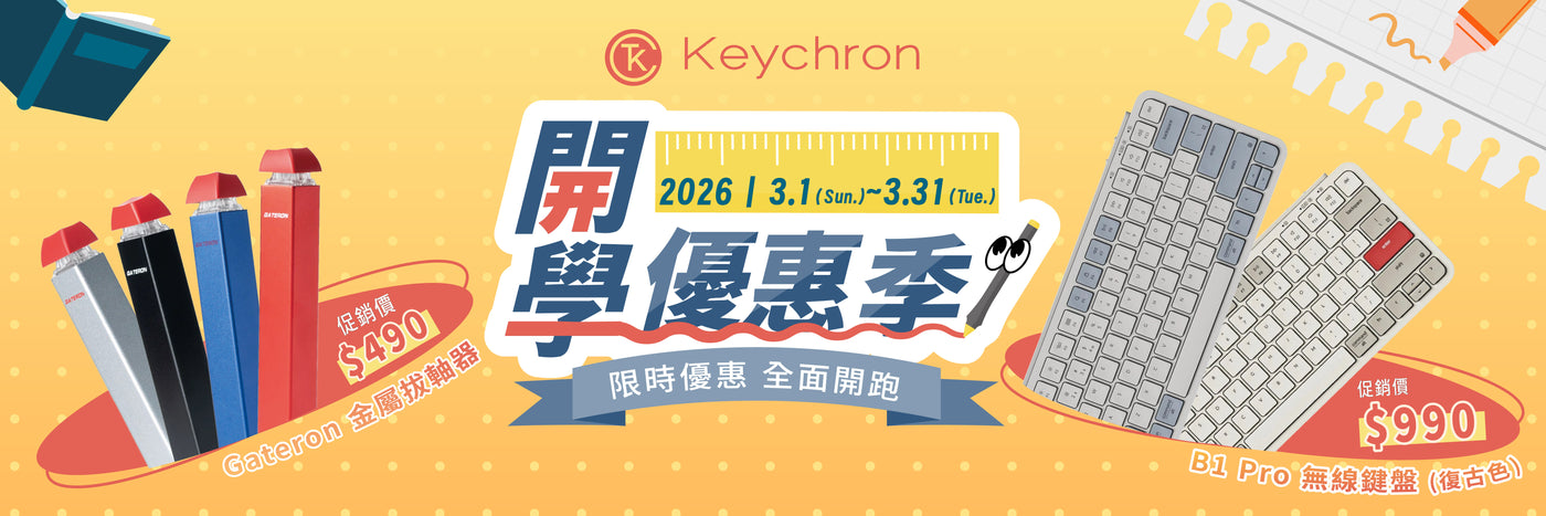 Keychron是少數在Mac佈局中配備macOS媒體鍵(F1 至 F12)的機械式鍵盤之一,與傳統Mac系統相同。