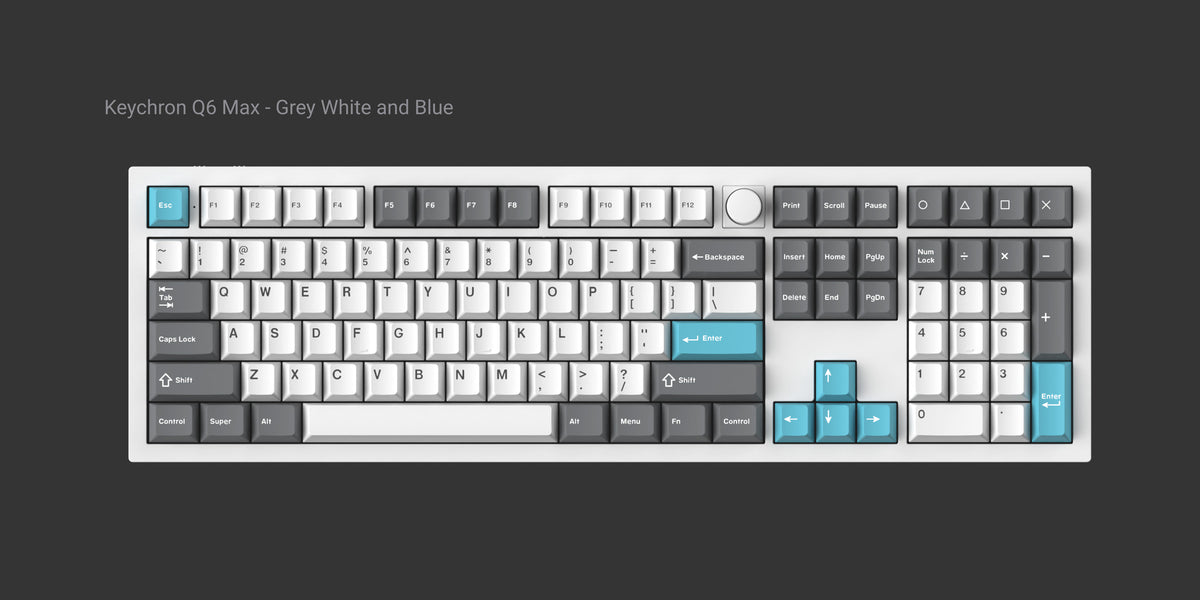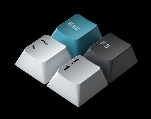 這款鍵帽套裝採用灰、白、藍配色,雙色注塑工藝印製字符,帶來舒適的打字體驗。此套裝既適用於遊戲,也適用於打字。